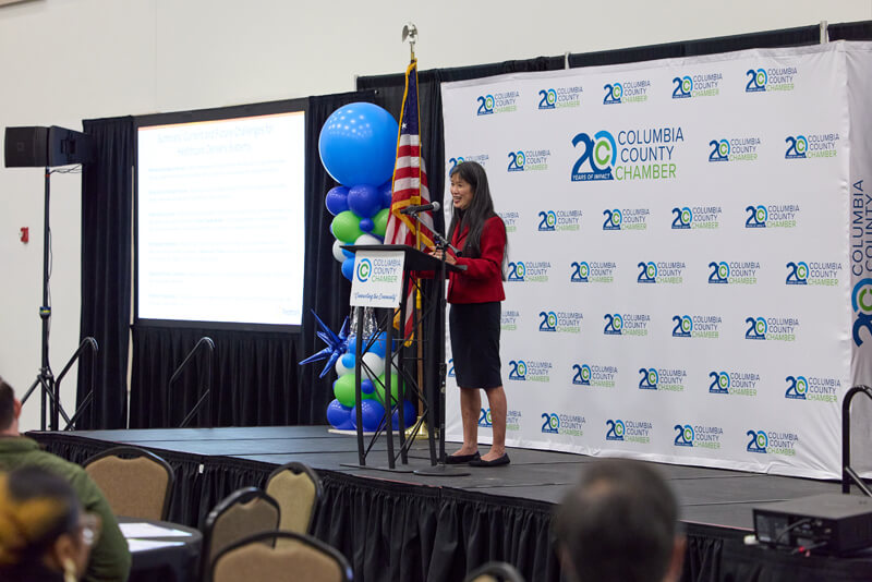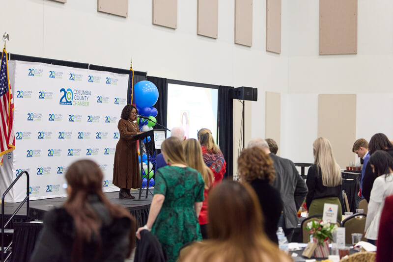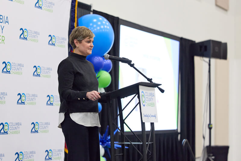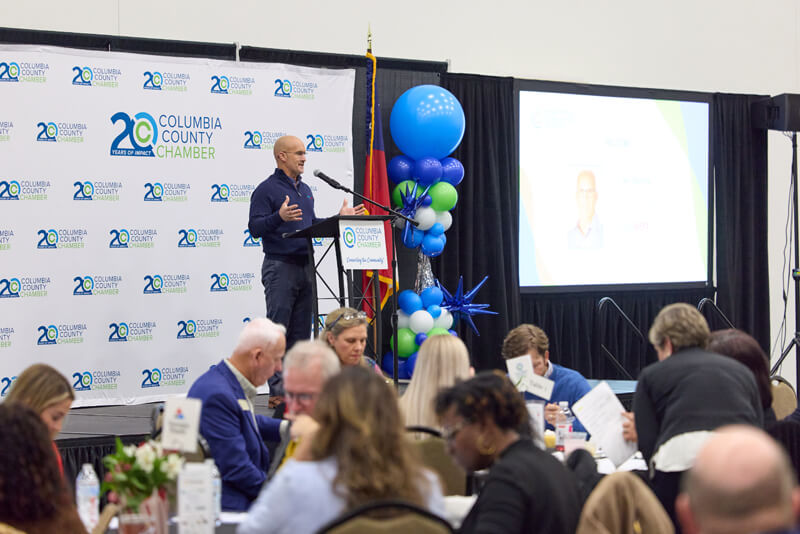 Doors to the Columbia County Exhibition Center open at 11AM with networking and lunch, followed by the program starting at 12PM.